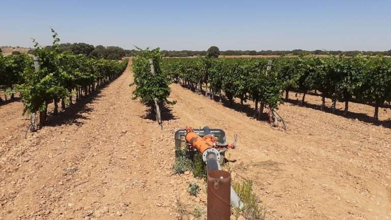 Location of a borehole prepared for perforated irrigation near a borehole piped with metal tubing and not installed to be used in piezometric control.
