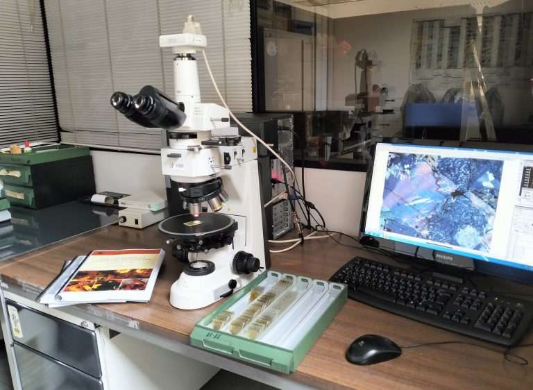 Petrographic microscope of the IGME-CSIC Office in Salamanca, an essential tool to identifying rock-forming minerals.